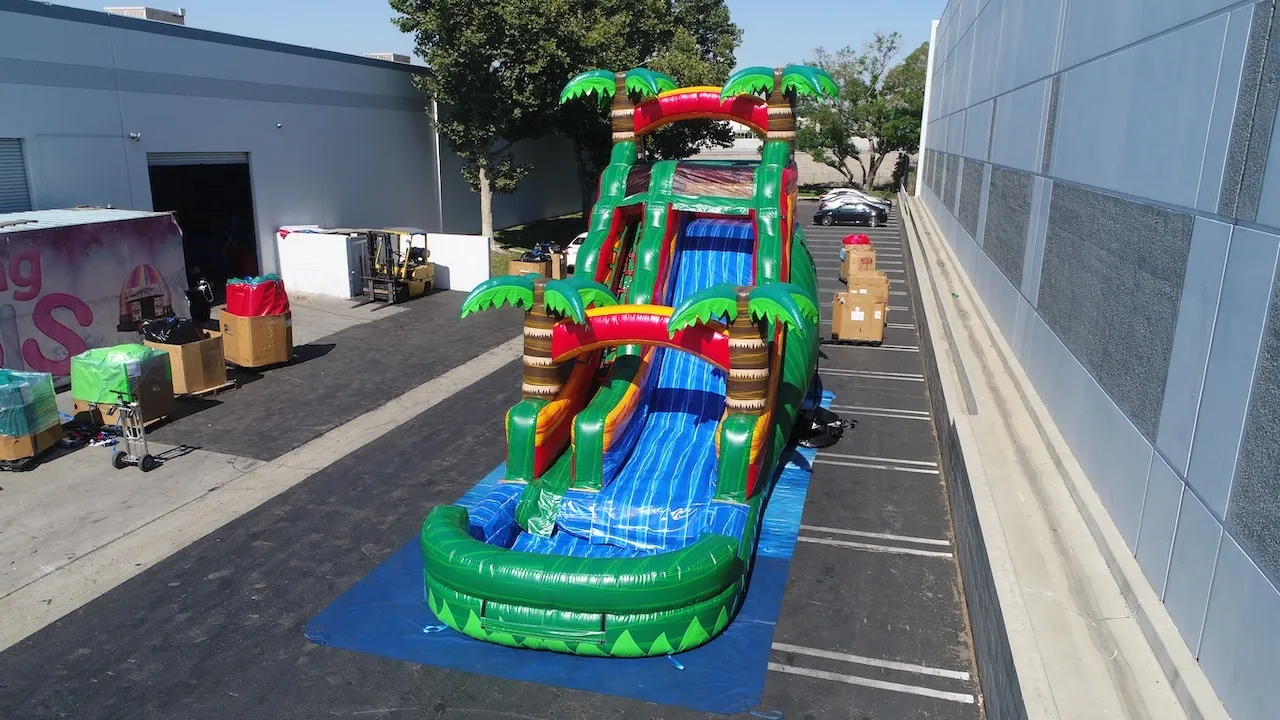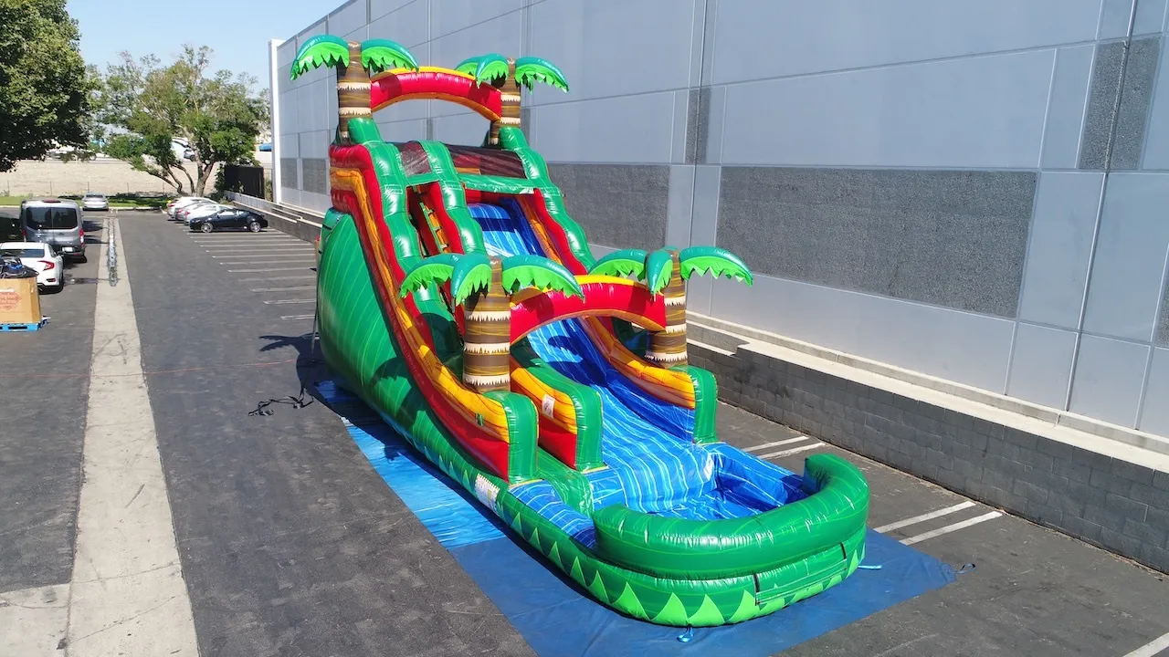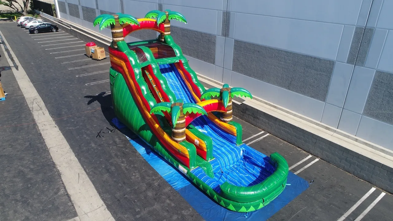 Get ready to zip, zoom, and splash through the jungle! The Rainforest Rush Water Slide is a wild ride of fun with towering palm trees, vibrant colors, and a slippery slide that screams adventure. It’s perfect for high-energy kids who love fast thrills and epic splashes. Bring the rainforest to your backyard and turn any party into a tropical escape! 🌊